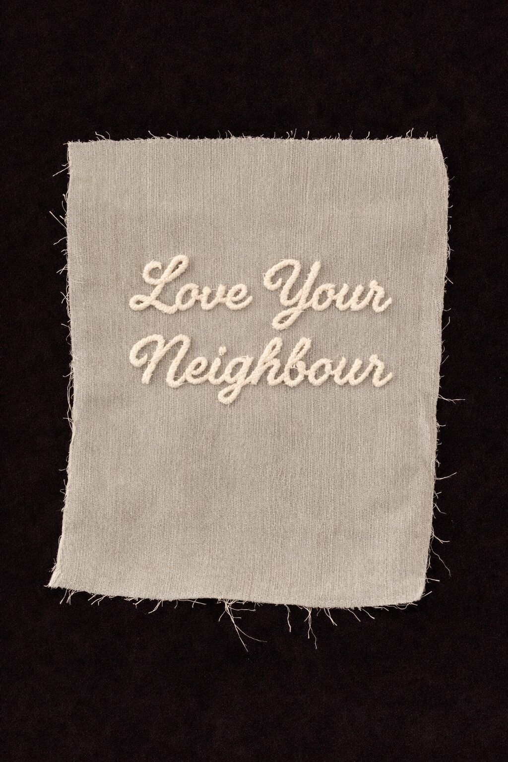 Elskaðu náungann er samfélagslegt útsaumsverk eftir Rainy Siagian þar sem þátttakendur koma saman við borð til að sauma og ræða hugmyndina um heimili. Hvað þýðir heimili? hvernig líður fólki þegar það flytur? hvað felur það í sér að yfirgefa heimili og hvernig hægt er að skapa nýtt?