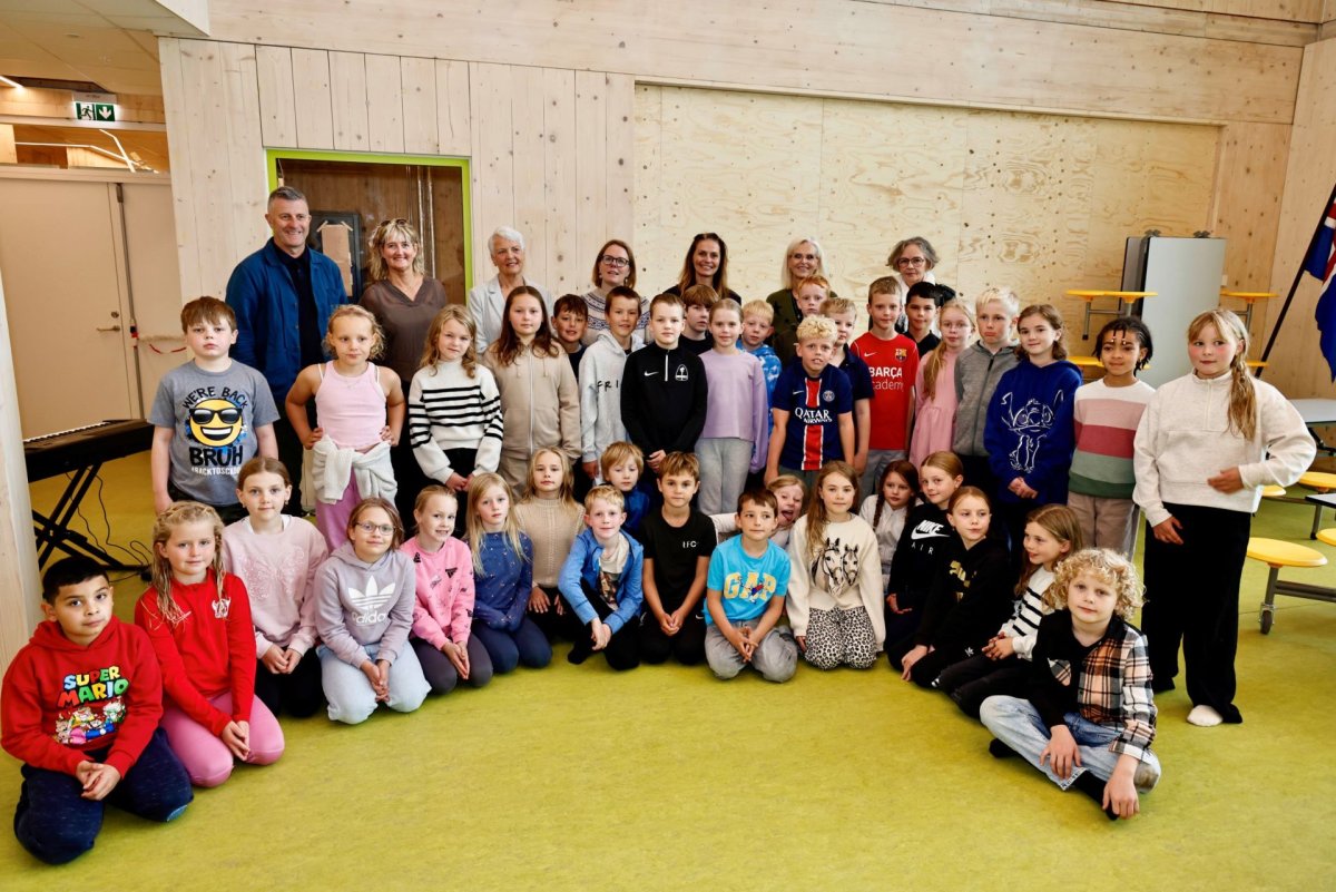 Nemendur í 4.bekk Barnaskóla Kársness ásamt bæjarstjóra og góðum gestum.