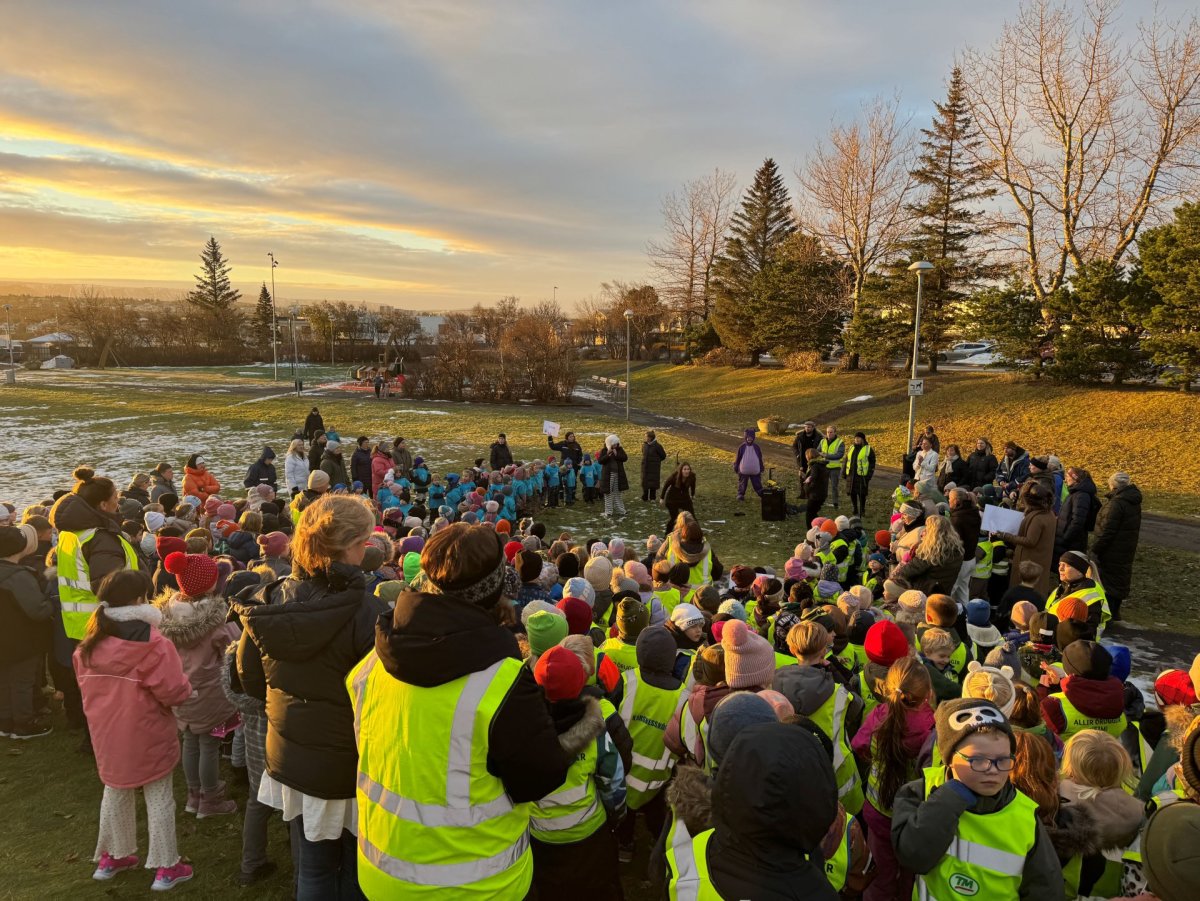 Börn í skólum á Kársnesi komu saman á Rútstúni.
