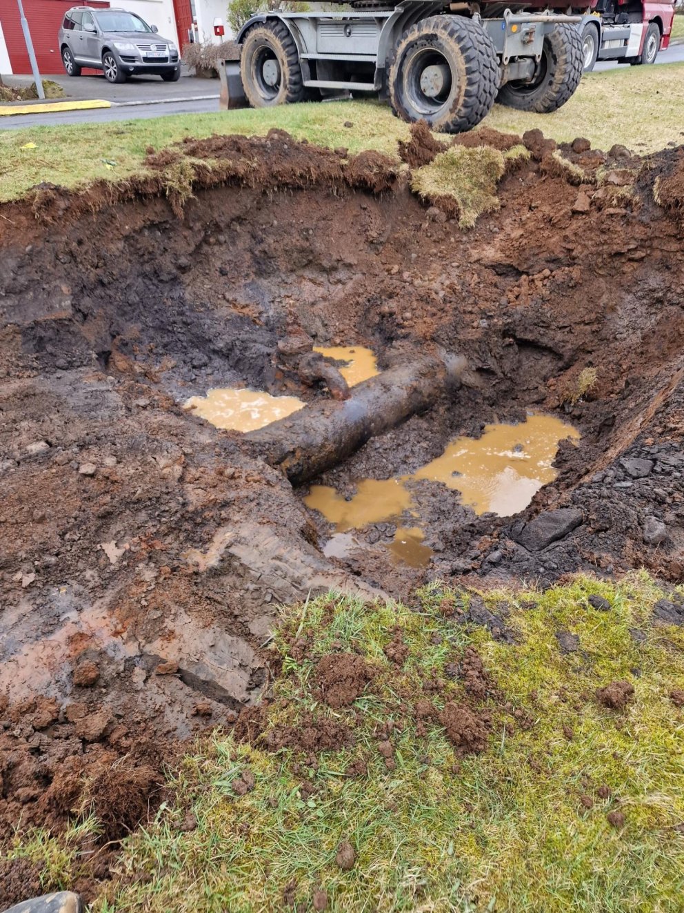 Viðgerð lýkur seinna í dag og ætti vatnsþrýstingur að vera orðinn eðlilegur stuttu eftir að viðgerð lýkur.