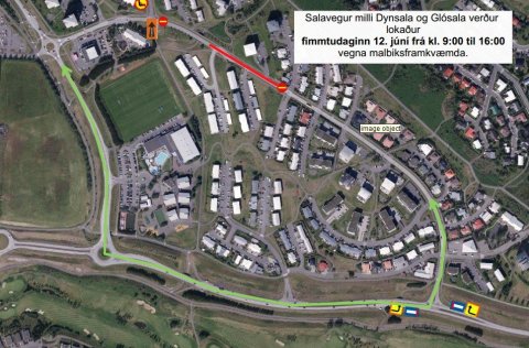 Á milli kl. 9:00 og 17:00 er hluti af Lindarvegi lokaður vegna malbikunar er veður leyfir.